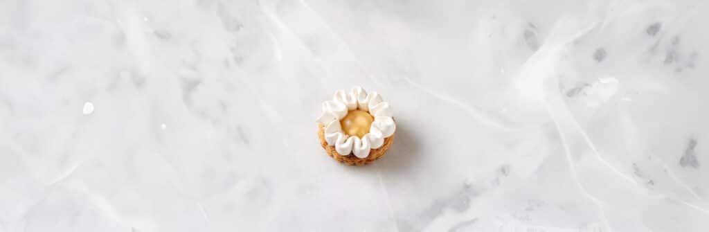 Disfruta esta tartaleta de pera con hojaldre crujiente, cremoso de mascarpone y praliné de almendra irresistible.
